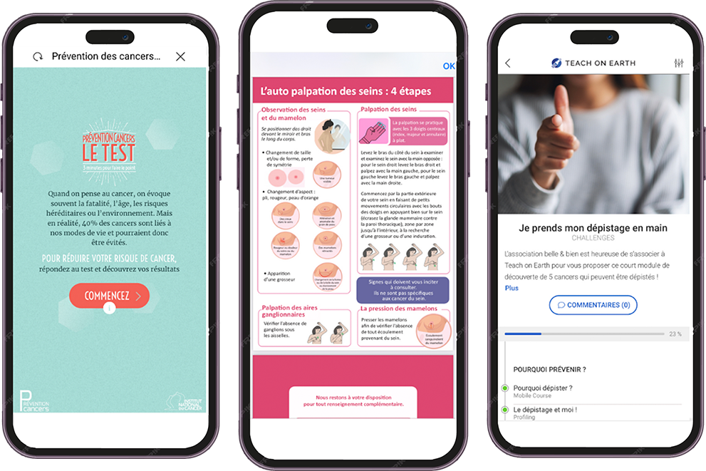 The Belle & Bien association is striving to raise awareness and take action, so that screening becomes a reflex all year long, by providing the course, ‘Taking my Screening in Hand’ free of charge, in partnership with Teach on Earth.