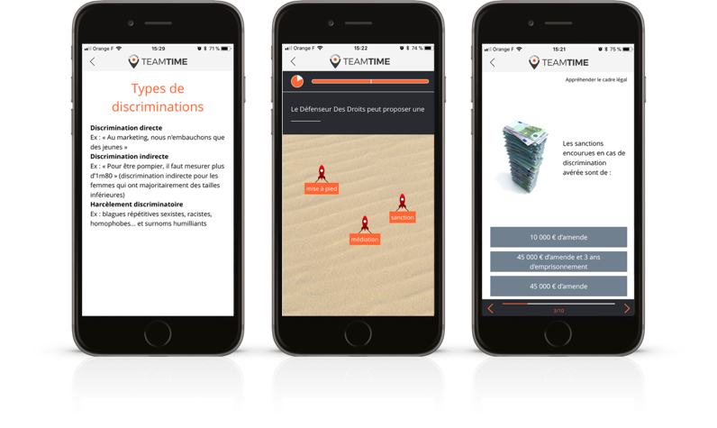 Le cabinet s’est lancé dans une première solution de e-learning en 2011, mais a vite renoncé à cette tentative de digitalisation de ses formations. La solution s’est révélée inadaptée pour ses clients : « j’avais la main sur les contenus, mais les activités étaient moins ludiques et moins personnalisables », relate Sophie Boddèle, Directrice Générale chez Diversity Conseil. Son équipe était en attente d’une solution nouvelle. Le projet de mise en place d’un dispositif de mobile learning était en réflexion depuis 3 ans et c’est à l’occasion du salon e-Learning Expo au printemps 2017 que leur choix s’est porté sur Teach on Mars. La start-up y présentait la solution la plus complète parmi les différents acteurs sur le marché du mobile learning.