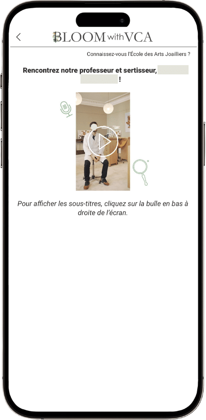 Depuis 2019, l’application BLOOM with VCA accompagne la diffusion de cette culture à travers le monde. Son ambition : offrir à toutes les équipes – qu’elles soient en boutique, en atelier ou en siège – une expérience de formation immersive, élégante et fidèle aux valeurs de la Maison.